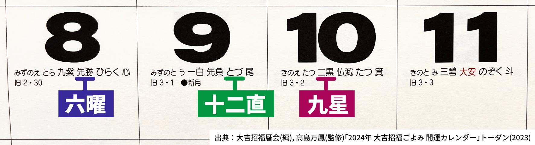 といった具合です。(ちなみに暦注は江戸時代には数百種類あったとされています)